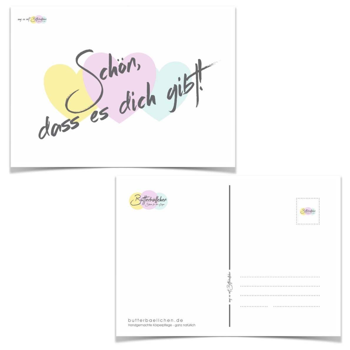 Sag es mit Butterbällchen. Die Butterbällchen-Karte “Schön, dass es dich gibt”.